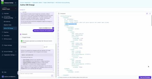 Harness’ platform would then analyze the current schema and policies, generate a backward-compatible migration, validate the change for safety and compliance, commit it to Git for testing, and create rollback migrations.