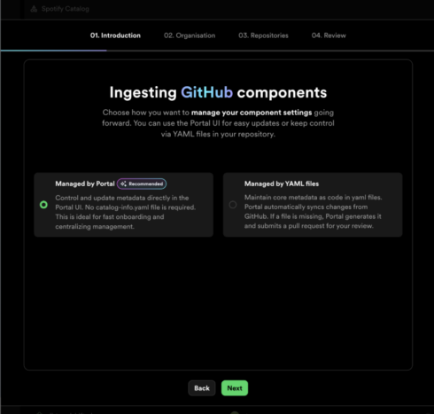 Another new feature is the Catalog Wizard for the Backstage catalog, a directory of all websites, APIs, and services in a developer platform. The new wizard will enable teams to more easily keep the catalogue up-to-date, and allows users to create and update entries directly in the UI.